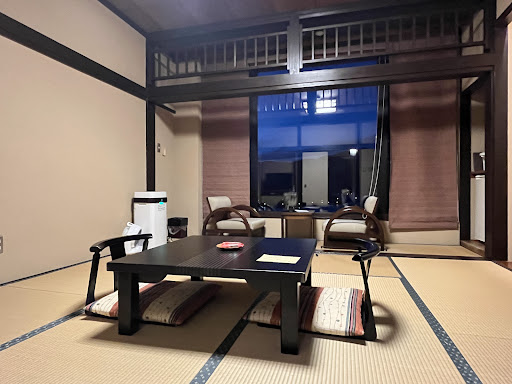 Wow! This place is incredible! First and foremost, let me say that if you're looking for a short, exciting stay around Fuji, this hotel will certainly accommodate. It's not only comfortable, but the location is excellent as well, almost deceptively so. . . We stayed in a traditional tatami room that was clean, comfortable and had an excellent view of the lake (note, you cannot see Mt. Fuji from the hotel). They also offer a free shuttle from the bus station if you call ahead. But before delving deeper into the hotel itself, I really want to mention the convenience of this hotel's location for potential visitors, as it would have been great to know when we first arrived. . If you want to see Mt. Fuji, there are a few options: . A free, slow and scenic route. This involves exiting the hotel's main entrance and following the immediate path going left until you reach what should be a reasonably well marked trail going up. This trail should have a shrine quite close to its starting point, which also has a public restroom. You can follow this route quite a long-ways up, and you'll encounter a comfortable park area somewhere along the way (and several benches) from where you should be able to see Mt. Fuji if the weather is accommodating. If you choose to continue powering along this trail, you will eventually reach the best viewing point in the area which happens to also be the end-point of our next option. . A paid, fast option: the ropeway. This option should be visible from the hotel itself and possibly from your hotel room. However the entrance itself is at the bottom of the hotel's hill, shortly to the right. Go early as this route gets busy quickly and you may find yourself waiting for a while later in the day. You can also purchase a boat tour ticket here that leads us into our next option: . A paid, slower, option on the water: boat tour. You can buy tickets for this at the ropeway, or possibly at the dock itself. This will give you a nice little tour of the lake, along with some commentary and a view of Mt. Fuji. A very worthwhile experience as well, if you enjoy being on the water. . A bus route, optionally packaged with the last two options at the ropeway. I did not try this option, but it seemed worthwhile as well if you have time. Any or all of these options are worth doing and if the weather is kind, you will get a wonderful view of Mt. Fuji. But even if you can't see the mountain, the views of the lake and city are still exceptional. . . Now, onto the hotel itself. I'll try to keep this short and sweet. The staff is very welcoming and will try their hardest to help you out even if there is a language barrier. There is also a public and private bath, the latter of which requires reservation, as well as a fee. Both baths have a wonderful ambiance, that really give you that "relaxing in the mountains" vibe. The private bath is actually outdoors on a sort of balcony, which gives you a great view of the area but may be a bit off-putting for anyone wanting complete privacy. . Finally, breakfast/dinner. This is almost certainly cheaper to book in advance and is worth enjoying at least once. The dinner is a traditional multi-course Japanese meal (Kaiseki), which includes a range of vegetables, meats and seafood. It was very well done, but familiarize yourself with common dishes as it may not be to everyone's tastes. Breakfast was also traditional-style and enjoyable, but not quite as special as the dinner. Otherwise, there are a few restaurants in the area (be mindful of their hours) and a Lawson not far from the bottom of the hill,...