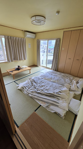Read moreMein Bruder und ich hatten für 2 Übernachtungen gebucht. Alles lief gut, außer, dass wir vom Bahnhof bis zum Inn laufen mussten, und die Straßen in Kawaguchiko sind echt nicht dafür gemacht viel zu Fuß zu gehen. Wir kamen dann aber dennoch an, der Chef des Hauses kam im selben Moment mit seinem Auto und begrüßte uns ganz herzlich. Er entschuldigte sich dafür, dass er kurz weg war aber wir erklärten ihm, dass wir selbst gerade erst kamen. Sofort danach zeigte er uns unser Zimmer. Ein traditionelles Tatami Zimmer mit zwei großen Matten zum Schlafen und einem kleinen Tisch. Wir hatten sogar einen kleinen Balkon, leider ohne Sicht auf den Fuji. Das erledigten wir dann aber noch schnell an dem Tag. Der nächste Tag sah dann sehr verregneten aus. Der Chef des Hotels erklärte uns, dass es einen Tag später besseres Wetter geben wird. Nur war das ja eigentlich unser Tag der Abreise. Wir fragten ihn ob wir noch eine Nacht länger bleiben könnten und zum Glück war das Hotel jetzt im April nicht so voll. Er stimmte zu, wir bezahlten die zusätzliche Nacht in Bar und hatten einen verregneten Tag in dem wir zum Vergnügungspark, eine Station zurück, gefahren sind. In dem es ein Naruto Dorf und Restaurant gibt. Also das perfekte für einen Regentag. Dann hatten wir aber auch einen fast wolkenlosen Tag am Fuji. An sich hätten wir ohne den Besitzer des Hotels den Fuji nicht so erleben können wie wir es jetzt getan...