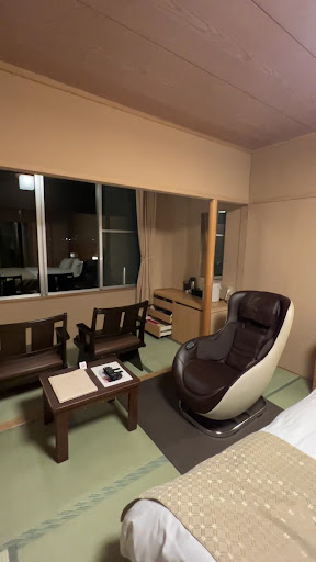 Went for a spontaneous trip here for a festival and stumbled upon this place to stay. When we arrived we were escorted to a parking spot and the attendant asked our Last names (we didn’t have a reservation) and so he called into the front desk to check availability. Once inside the worker wrote down three prices and used a translator to explain there were different types of rooms. We went with the best available. The price he wrote down and told us was what we expected to pay at checkout…NOPE! He wrote down a rate that ended up being a PER PERSON rate, which was never explained. We agreed to stay thinking what he told us was the correct information. Why he didn’t write down what it would actually cost instead of doubling it upon CHECKOUT I’ll never understand. I’ve never heard of being charged per person for a room…!? also the dinner was “FULL” so we didn’t even get to enjoy that part of the experience. It’s not conveniently located to restaurants so at that point we just stopped and got some meals from Family Mart. I did have a lot of great things to say about this place until I saw the receipt…what a disappointment. The view was pretty. The massage chair in the room is nice as well. The onsen is okay…not sure if it’s natural spring water or not. If we weren’t charged double I would’ve said it was worth the stay.