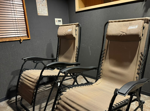 整い場は室内、リクライニングチェア、エアコン、冷蔵庫、お香、Bluetoothスピーカー完備。 HPには外にも出れるような表記でしたが、 夏場は蚊がいるのでオススメしません。 とのことで実質ないようなものでした。