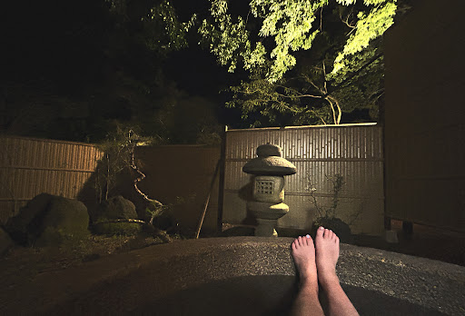 They have a public/private hot bath to reserve when you book a room that has a hot tub but doesn’t. The Hot Bath is nice. It was really weird to have a perfectly clear, large window facing you while you’re in the bath.