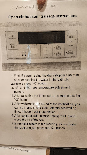 They have a public/private hot bath to reserve when you book a room that has a hot tub but doesnโt. The Hot Bath is nice. It was really weird to have a perfectly clear, large window facing you while youโre in the bath.