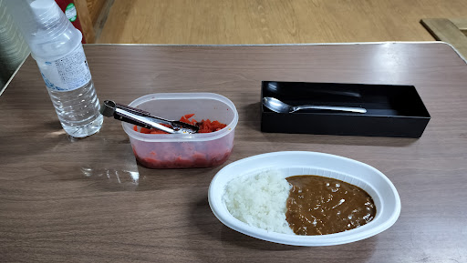食事も非常に美味しかったです。カレーは具は少ないものの味は絶品で、福神漬も添えられていました。一人一回のおかわりが無料で、量も大、中、小から選べる点が良かったです(おかわり2回目からは有料)。