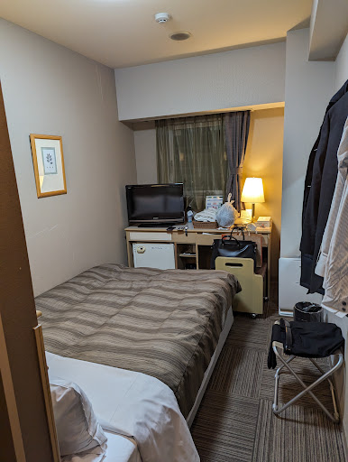 Read moreI stayed here for just one night. The best part of the hotel was the location . Since I only needed a place for one night I figured it would be fine. Maybe it was a slight notch below "Fine".||First issue: we arrived about 2:40 for check in at 3:00. We were somewhat tired and hungry but we had to wait until 3 to check in. It wasn't that the room wasn't ready, it was but it's their policy. They want to charge you to check in early or to check out late. Never had that issue in any hotel. They really want to nickel and dime you for anything "extra".||Issue two: the room. Very small but ok it's Japan and I sort of expected that. After sleeping on the floor for a week I was hoping for a bed. These beds are like rocks. And you get one lousy pillow that is also like a rock. Luckily I had a down travel pillow with me. ||Issue three: I could swear I saw breakfast served until ten but when we got there we were told it ends at 9:00 am so unfortunately we missed it. When we checked in there was a coffee machine with complimentary coffee but in the morning when I went to get some (because we obviously missed breakfast) I was told the machine was broken. For crying out loud get me a cup of coffee !||Issue four : this isn't a huge issue really but the restaurant that served only dinner didn't have a menu written in English. I guess you can't have everything.||In truth I would give this...