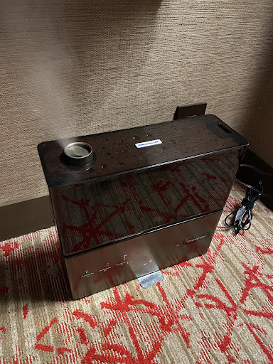 Our room wasn't big but was enough for 2 people - along with tv, small fridge, coat hangers + clothes/air freshener, safe, shoehorn, cups bottles of water, tea and even 2 sets of PJs. They also leave thank you cards each time they clean - ones that you can take to the front desk to exchange for small snacks/mints. (I think there was humidifier but wasn't 100% what is was because we didn't use it).