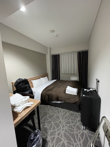 Room is good enough for two, a bit roomier than the standard budget hotels in Tokyo/Osaka because I can open my suitcase on the floor.