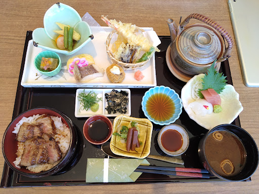たまたまじゃらんで見つけて、今回初めて日帰りプランの温泉&昼食で7月下旬の金曜日に伺いました。 ナビで行きましたが、ホテルの看板がみえ細めの道に入り、道がカーブしている為先がみえず不安でしたが、上り坂を上がった右側にありました。 12時半〜予約しましたが、音羽蒲郡インター付近で渋滞しており、到着が11時45分頃になってしまいました。 フロントで受付。「お風呂先に行かれますか?」って聞かれましたが、食事が12時半の予約だった為、ゆっくり温泉に浸かれないかもしれなかった為その旨をお伝えしたら「お食事先でも良いですよ。」っと言っていただけました。 食事処は、窓側のお席を案内していただけ、晴れていたので景色も最高でした。 食事は、「A5ランクみかわ牛プチまぶし」を注文し、ソースは3つの中から選べました。 天ぷらは、揚げたてで美味しかったです。 ご飯は小盛りでしたが、お肉も柔らかくソースもおいしくご飯がすすみました。 他の方の口コミで、ご飯がおかわりできるとあった為、聞いてみた所出来た為おかわりしました。食事の後は、温泉へ。 貴重品をロッカーに預け、脱衣場で着替えている時に1人お風呂から出て見えて、最初は貸切状態でした。 ヘアキャップやくしはないため、必要な方は持参されるとよいです。 お風呂は、洗い場が複数あり、シャンプーなども複数(LUX、パンテーンなど)ありました。 お風呂は、他の方の口コミを見て心配でしたが、内風呂はゆったり入れる大きさで、踏み台に座るとちょうど三河湾が見渡せ最高でした。 露天風呂は2つあり、少し小さめですがゆったり入れて景色がみえるお風呂と、石作りの大人2人が入れるぐらいの大きさの小さめのお風呂がありました。 ※今回女湯は露天風呂が2つありましたが、男湯の方は小さめの石作りの露天風呂1つしかなかったようなので、男性だと1人しか入れないかもしれないので、こちらのお風呂だと確かに小さい可能性はあります。