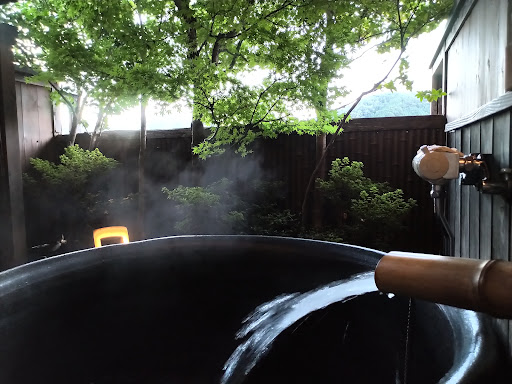 This is a traditional ryokan. The reception was friendly and professional including tea served in your room upon arrival and an orientation as to the various utilities and yukatas. ||||The room was similar to other ryokans we have visited: large with a low table and two chairs in the centre of the room which are replaced by two comfortable futons put into place while we were at dinner. ||||The difference in this ryokan was a small dressing room with a vanity hidden by a natural beam in the corner of the room as well as four upright chairs in front of a long natural beam table in front of the large picture window. ||||I can understand while some reviewers would see the room as being slightly dated with its dark trim but this is offset by bright halls with their floral carpeting and beautiful stained glass windows.||||As well, the traditional food was superb - artistically prepared and extremely tasty - with multiple dishes served by our gracious hostess. Given the recent investiture of the new Emperor we had a special menu prepared for Year #1 of Reiwa (the name of the Emperor's era). ||||The onsen was equally excellent, with various pools. A great place to start and end the day. All in all an...
