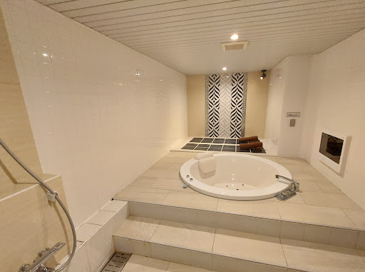 ◆設備 部屋に設置してあるポータブルスピーカーで好きな音楽が聴けるということでしたが、充電端子がグラグラで充電されていないらしく、電源が入りませんでした。NETFLIX等は自分のアカウントでログインするようです。 マッサージチェアは動きました。フジ医療器の立派なものがおいてありました。 部屋にビアサーバーが設置されていて、樽が空になるまで飲んでよいみたいです。私はマグカップで5杯ほど飲みましたが、空にすることはできませんでした。いつのタイミングで補充されているかは不明です。 部屋によっては岩盤浴が利用できます。 トイレはINAX製のもので動いていますが、古く点検ランプがつきっぱなしでした。 ウォーターサーバーが設置されていてお水に困ることはありません。熱湯も出ます。