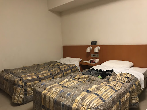 Cons: looks like it was built in the 80s and never left that era, very dated, carpets need a good clean, bathroom wasn't very appealing and the plumbing was dodgy such that you could smell sewage from time to time, cupboard doors were falling apart beds are all single, no way of pushing them together heating in the room was excessive with no way to turn off leaving us to have to open windows dinner options restricted to that in the hotel (most of which require reservations), or that of the grand next door (which was super pricy). We enjoyed eating at the Izakaya though and stuck to that most nights