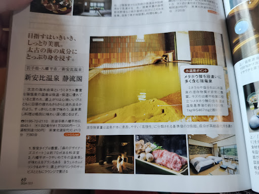 Read more20250409(水)13:00に「新安比温泉清流閣」さんの大浴場を日帰りで利用した際の情報です。温泉の泉質が含重曹食塩泉タイプの強塩泉である事に加えて、非常に多くのメタ硼酸が含まれているのが特徴で、一度訪れてみたいと思っていた温泉でした。以下、主に温泉利用のレビューとなります。