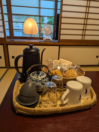 Read moreEnjoyed a stay here with friends. We had both the traditional tatami room and one with a standard Western bed. The provided breakfast was quite decent and included a soup, bread, and sweet bread. They also provide coffee, black tea, and green tea. The onsen is really nice, and the scheduling system is really helpful to make sure you can enjoy it privately. The check-in and check out procedure through the tablet was very easy as a Japanese resident, but I'm aware that for travelling foreigners, it was a bit more complicated. Be sure to have your passport on hand. There aren't always staff there, but the restaurant staff on the first floor were very helpful and lovely. The river outside is quite loud, but I personally found the flowing water sound...