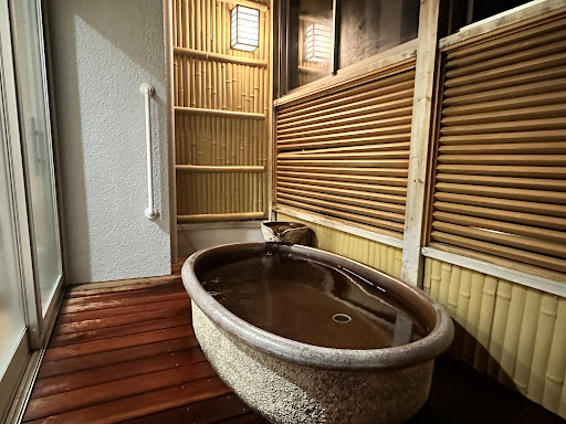 Read moreチェックインして、さあ食事の前に露天風呂に入ろう!ということで露天風呂に向かいました。露天風呂は宿泊する建物から離れています。天候によっては向かうのがだるいです。雨の日はすげ傘を借りることが出来るようです。||||露天風呂に到着して驚きました。洗い場が無い!申し訳ないですが、かけ湯のみをして入りました。浴槽?の大きさはよくある貸切家族風呂に毛が生えた程度。でも雰囲気は良かったです。雨の後だったのでぬるめでした。||脱衣所も外にあり、冬は寒いこと間違いなし。今回は夏のはじめだったので蚊が飛んでいました。||||内湯の木賀の湯はやや熱めで、長湯は出来ませんでした。大きさも、こちらも貸切風呂よりちょっと大きいかな?くらいでした。他の方も書かれていますがカランの温度調節がうまく出来ませんでした。||||さてさて夕御飯、私たちは足柄牛のステーキをメインに頼みました。これのボリュームがものすごい。大満足です。その他の料理も大変おいしゅうございました。先付から水菓子まで、とても手が込んでいたように思います。||ただ、大広間のようなところで食事なので、他のお客が大騒ぎしているとうるさいのと、ゆっくり食べていると周りではカチャカチャ後片付けが始まってしまいます。朝も同様でした。ゆったり過ごすことは出来ません。寝坊もできません。||||部屋の清潔感に関しては…うーんもうちょっと頑張って欲しい。||トイレの窓枠、私だってもう少し掃除するし、その他「なぜここでぞうきんを止めたの」と思えるようなところも(四角いところを丸く拭く、ような感じで掃除の詰が甘い)。あと部屋の独立洗面台からお湯が出ませんでした。これは冬は辛いと思います。||衛生面で最も残念だったのが部屋備え付けのグラスでした。何ヶ月洗ってないんですか。。。と言いたくなるような独特なホコリの臭いがしました(洗面所備え付けのうがいコップは清潔でした)。||||<その他>||〇夜には蛍を鑑賞することができました。||〇箱根彫刻の森美術館まで歩けるが、道なき道とのこと||〇ホテルまでは急坂、さかというより山道です。絶対にお迎えをお願いしてください。||〇食堂に最も近いトイレは男女共用 しかも小便器と個室という作りなので運が悪いと異性が鉢合わせます。男女別れたト...
