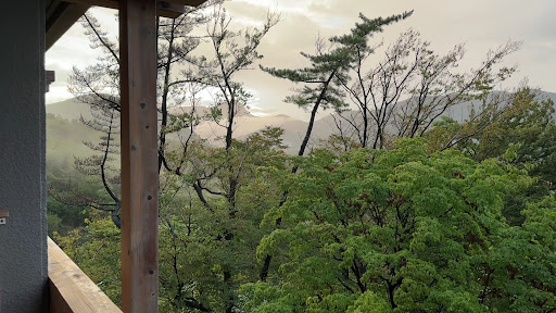 The hotel is beautiful and overlooks the mountain range of Hakone, with clouds just drifting through the mountains. Its zen, peaceful, beautiful, and relaxing.
