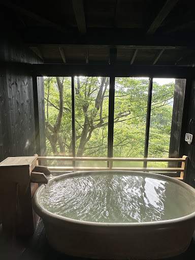Read moreMixed bag here- but the strong was so strong that I just couldnt go less than Very Good.||||Let's start with the weaknesses:||The decor is 1960's though everything is absolutely immaculate||There are only 8 rooms, so if you're looking for an ambiance, let alone a vibe- forget it- there is none BUT it's peaceful.||||The private baths are not 'in room' and require you to go down to another part of the Ryokan||While the rooms are very traditional Ryokan style, the overall architecture pulls you back into the 60's....which is particular.||||Wifi only in the lobby- free, but lobby only was not ideal.||||The owner is in her 70's and though we just loved her total commitment to making us happy, there were many moments where she just monopolized our meal and hijacked all the discussion as she was busy explaining each dish in our Kaiseiki meals- we simply could never get the flow our conversation going as she just kept interrupting!!||||This is due to the fact that we were the age of her kids/grandkids AND that several of us didnt speak Japanese (though one did)- she was just being affectionate and motherly. However, at $800USD a night, no matter what the reason, I expect to be left in peace to enjoy my meals. I can ask if I REALLY want to know what is every last dish- but again, what am I to do? Be unpleasant to this super nice lady? This really left a bit of a mark on our stay unfortunately.||||Now the advantages:||||Wonderful views of the area from the restaurant||OUTSTANDING Kaiseiki meals- really world class quality...such inventiveness and creativity blended with aesthetics was striking- all of us where floored.||||Wonderful private Onsen for each room with lovely different tubs in every private cabana- plus a 'sauna' room with a warm stone bed. Windows open wide into the valley and you really can take your bath in peace....just great.||||Peaceful and discreet ambiance- almost like a modern day monastery.||||Lovely color co-ordinated Yukata for him and her just added to the overal esthetic.||||Though 60's the architecture lends itself well to the multi level/discreet ambiance we found so relaxing.||||It cannot be overstated how charming everyone was at this Ryokan- really lovely people.||||Would recommend and for the meals & private onsen...