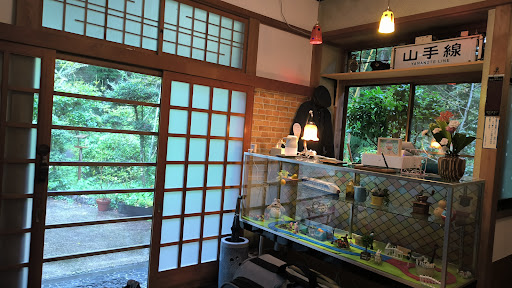 The ryokan is decorated aesthetically, showcasing themes of trains, soft music in the lobby, and overhead lights.