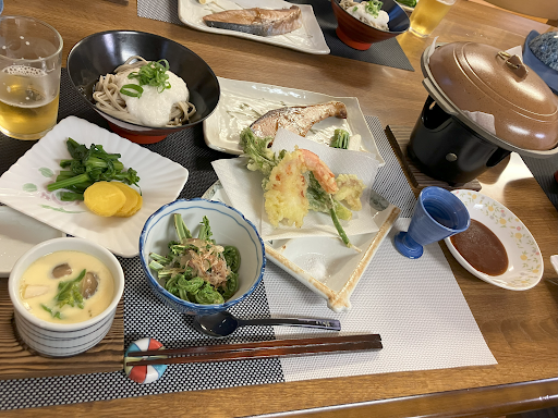 Read more在這滑雪住了一個半月,早餐晚餐都非常好吃,尤其晚餐甚至比餐廳還好吃,房間是傳統日式榻榻米,還有一個超讚電暖爐,浴室有個大澡堂,每天滑雪回來可以舒服的泡個熱水澡! 老闆夫妻真的很貼心,我們的車停好後忘記關車內的燈或是晚上大雪忘記立雨刷,他們都很細心的提醒我們或幫我們立雨刷。 如果是外國人也不用擔心不會日文,老闆的英文很好,溝通不用擔心語言不通! 交通上走幾步路到路口就有公車站很方便,自駕也不用擔心停車,門口就能停很多台車,開出去就是大條馬路,沒有租4WD的車也不用怕卡住,大馬路都有除雪,最近的五龍雪場開車5分鐘就到! 另外,他們自家種的白米也很好吃,1kg只要300円,包裝也很精美,推薦可以買一些當伴手禮喔!