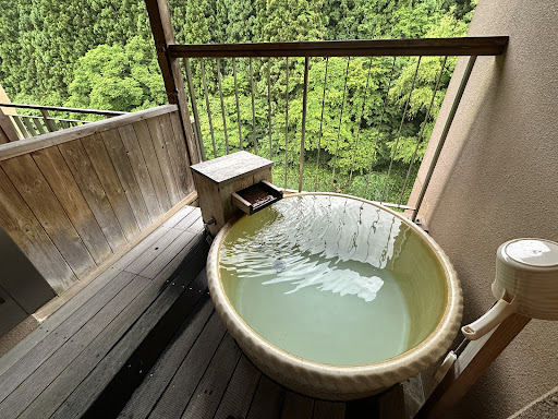 Read moreHad a one night stay in March and regretted the fact that we did not stay longer. Our room was on the ground floor, with a balcony that opens into a small garden and the river that runs next to the resort. All rooms have their own private rotenburo (open-air hotspring) and ours was no different. The resort also has two "public" rotenburos.||||From our rotenburo, we could heard the river flowing and the trees swaying in the mountain in front of us. It was absolutely serene and peaceful. The room had modern amenities such as the washlet, LCD TV complete with cable channels and a sound system complete with "spa tunes". There was also a "rest area" complete with massage chairs and best of all, a drink machine complete with soft drinks and all kinds of tea. Right next to the "rest area" is an outdoor foot bath where you can dip your foot into a warm pool.||||Breakfast was served in a restaurant and unlike other restaurants, there are booths so as to enhance the privacy factor. It was not buffet unfortunately but was more like a Japanese-set meal. It was beautifully presented and the staff was on hand to explain the different food items and refill our drinks. That day, I opted for the locally-produced apple juice and boy, that was the sweetest and most delicious apple juice EVER!!! I probably had 5 glasses of them by the end of breakfast.||||I highly recommend this hotel for anyone who wants to get away from it all. I would definitely try to return...
