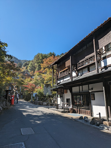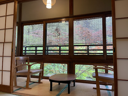 This is a traditional ryokan, so you’ll be greeted with a low table and tea when you first enter the room. There are chairs on the enclosed balcony if you want to enjoy the view. The traditional shower/bath is made with hinoki wood, and they had a bath drawn and a hot kettle for tea when we checked in.