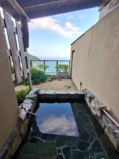 Tatami rooms with panoramic sea views, plus an upscale eatery, a tea lounge & an open-air bathhouse.