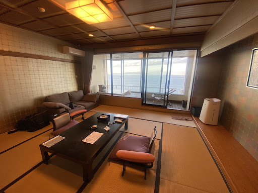 Read more😊: - location: is right beside the beach. So it’s cozy to hear the wave in room. ( except the windy day would be a bit horrible…) and there’s a steep way up to the train station like a 6 minutes walk. But they have free shuttle when you check out. So it’s fine. staff: super nice although they don’t speak English. I feel warm when talking to them. I’m grateful. onsen: they have sea view onsen, which is amazing.. 😢: - they don’t have WiFi in room. I think it’s unacceptable when it’s almost 2024… and I can hardly get bars in my room. I mean, it gets dark in 4:30pm, and there are no entertainment around, TV only has 4 channels. So I don’t feel enjoyable at night…. they seems not prepared for the international market, no English signs, no English speakers… and if you order meal, I’m not sure if you could adapt to the fixed time and fixed meal if you’re a foreigner. the facilities are old, old hairdryer, old ventilation with dust, old chair… well it could be a gimmick if you prefer traditional Japanese style tho. They should provide some more merchandises in store while there’s no convenience stores nearby and you’ll starving if you check in late… could be nothing...