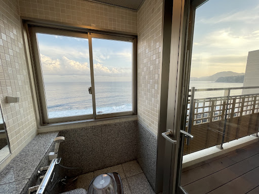 Read moreThis hotel overlooks the ocean along the Eastern side of the Izu peninsula. It is convenient to several sight seeing places including the historic town of Shimoda and if you're there with children, the "Animal Kingdom" is just minutes away. ||The hotel itself isn't new and the outside of the building is nothing to look at, but the lobby and common areas are well kept. The room itself was the most impressive, spacious, clean and very "new" feeling - nothing shabby to speak of. We sprung the extra cash to get an in-room bath, which was absolutely worth it. The tub and room overlook the Pacific coast, and the hotel is situated in such a way that you can believe there are absolutely no other buildings around at all. However, within walking distance are a supermarket and convenience store if you need to stock up on snacks etc. ||The regular guest baths were also very nice, my favorite being the outdoor bath on the 5th floor where they also have massage chairs free for anyone to use. ||We received excellent service from the woman assigned to our room. She was very friendly, and a big hit with my 2 year old daughter. The food was a major highlight of our entire Izu trip. The seafood was excellent, and we found ourselves in the hotel shop buying several of the things served as side dishes because they were so tasty, we wanted to take them home. And there was so much food served! Luckily our daughter loved the food too, so she helped us finish more of it - otherwise there would have been quite a bit left over. ||Only one small detractor. There is a rather ugly empty swimming pool if you peer over the edge of your balcony, between the hotel and the rocky waves. It's not part of the view when you're just sitting and looking out, thankfully. ||Also, be advised that a lot of the regular gifts in their shop have very jacked up prices. We only bought the specialties of the hotel in their shop as we felt they were worth the price. Other items should be purchased elsewhere. An example: a bottle of sake I bought earlier that day at a regular shop to give as a gift was a full 800 yen more expensive in...