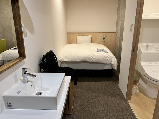 ย ย ย Read moreThis was a very nice hotel/hostel. I stayed in the female dorm-style room. There was a wonderful closet that was perfectly sized to fit every travelers luggage nicely. The room was floored with tatami and had a little mini fridge that was very convenient. It had a tiny TV but that wasn't a downer since I was there to sight-see. The place was located very close to a train station that was just a stop down from the main Hiroshima bullet train station and it had a tram stop just outside the train station. There were restaurants around the place and a little pastry shop where everything is in small stick form, it's awesome, try it, it's right next to the tram stop! The restrooms were very nice and though the shower was tiny, it was comparable to the low price. They also had a nice little bakery on the bottom floor and when I was going to have to check-in really late they were willing to help me out by checking me in at a later time!||||Overall a really nice place for the price, it was very clean and I met some wonderful ladies while staying...