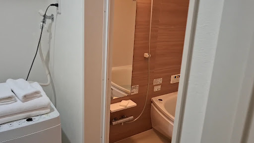 Read more楽々園という駅からの徒歩1分以内で着きます。宮島へは広電で1本で行けるし、広島駅にも1本で行けるという立地のよさ。近くにはイオンモールも出来るみたいです。1週間後にオープンだと書いてありました。宿から1、2分のところにコンビニもあります。 室内はベッド、ソファー、テレビ、冷蔵庫、電子レンジ、洗濯機という必要最低限のものはあり、他には箸や鍋、洗剤、タオルなども置いてありました。数日滞在しても困らないです。 お風呂は浴槽含めて広かったです。1坪風呂より広めな印象でした。 お部屋は清掃がよく行き届いており、嫌な気持ちは一切しなかったです。気持ちよく過ごせました。娘はハウスダストに激しく反応しますが、それも一切なかったので、綺麗だったのだと思います。