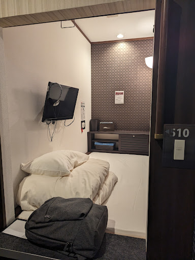 Read moreThis was our first capsule hotel experience and it was an extremely good one. The place was very clean, well organized, and comfortable. It's in a great location (check out the new vegan-leather shoe shop down the street) with lots of places to eat nearby. Breakfast was very good (buffet style with Japanese and more 'western' items available), and you're free to fill up on calories before heading out for the day. The capsule rooms were quiet and comfortable (I'm a bit bony so the firm mattress is the only thing that stops this getting a five star rating, but maybe that's as much my problem as the venue's) and my other half slept like a log in the next capsule. Showers and bathroom facilities were very good indeed - be aware that these are mixed dorms, so the bathrooms are also mixed in case that's an issue for you. We'd advise reading a bit about capsule hotels before booking as some non-Japanese guests looked bemused. Would definitely recommend...