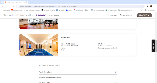 Read moreThis is an pretty average international Sheraton hotel, based right next to the Shinkansen exit of the JR Hiroshima station. If you take the airport limousine bus from the airport, it drops you off half a block away from the hotel entrance. The location is not central to Hiroshima, but has a great variety of transit options. For example, all trams start at the JR station, and there’s easy access to the Miyajima ferry via JR Rail. The Sightseeing Loop Bus starts in front of the hotel as well. There are also plenty of food options nearby in the JR station, and across the street accessible via a walkway on the 2nd floor.