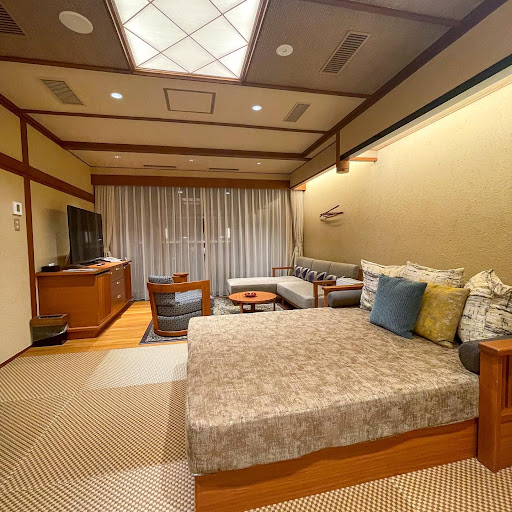 This place is quite remote, considering that the railway station is currently closed due to the flooding in 2021. You have to take a highway bus from either Kumamoto or Kagoshima which will drop you off at Hitoyoshi Interchange, about 30 min on foot from the ryokan. In advance of our stay, we emailed twice asking whether they could reserve a taxi for ous, since our Japanese is quite limited, to which they never responded. To make things worse, this place has a shuttle service, but for some reason we weren't allowed to use it (perhaps because we didn't stay in one of their super premium rooms, who knows?) The windows in our room were really dirty and looked like they hadn't been cleaned in years. Such a shame, since the river view from the room is really pretty! There were LOTS of spiders and insects in our room. No insect screens in the windows. The drain in the shower room was smelly. Our room came with biscuits containing eggs and milk even though we booked this room with a vegan meal plan. Not...