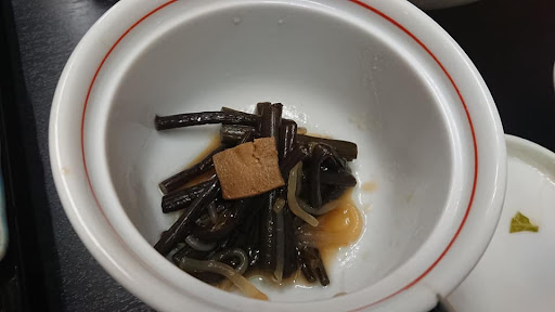 部屋へ。 部屋は6帖で、最初から布団が敷いてありました。 今時珍しく、部屋に灰皿が置いてありました。 前日に宿泊した人が喫煙者だったのか、部屋の中が煙草臭い。 嫌煙家の私と主人には、この煙草臭はチョッとツライ。 肌寒かったので浴衣に着替えてから布団の中へ。 吉倉屋旅館の布団はふかふかで温かかったですが、こちらの布団は冷たく、いわゆる煎餅布団です。 部屋に暖房器具や空気清浄機は無し。 冷蔵庫も故障しているのか、電源を入れても冷たくなりません。 トイレは洋式ではありますがウオッシュレットは無し。 (部屋によってはウオッシュレット付きもあるらしい) 部屋の広さから設備まで、吉倉屋旅館と比べると随分と貧相です。
