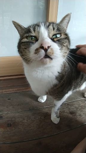 ★2023年7月下旬、平日素泊まりにて再訪。 下界より気温は8度低いです。 朝方はやや寒い。 他に宿泊者がいなかったせいか、早々に黒猫ちゃんが来訪し膝の上に居座って毛繕い~の就寝。 1時間以上乗っかられていました。 のせいか、夜中の訪問は無かった。 他の猫ちゃん達も訪問は無かったですが、宿入口で写真を撮らせてくれました。
