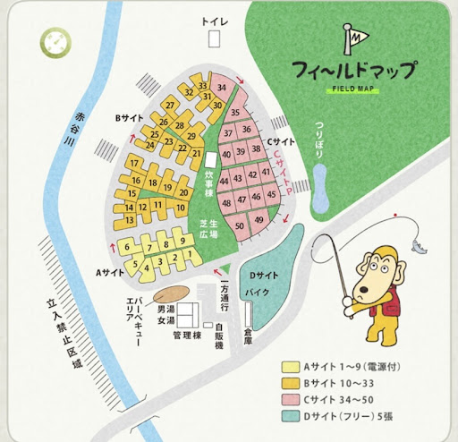 17番27番サイトが川へ降りられる場所の近くなので、前が開けていてサイトから川が見やすい気がします。24番は街灯が前にあるのでいつも明るい。 他サイトも街灯前だと照らされるので良し悪しですね。