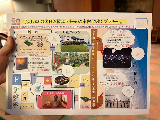 Read moreI decided to rate it at 2 because of the first impression is disappointing. I rated it 4 because of OKAMI and food quality.||There was a typhoon in the south of Kyushu that day. It was windy and rainly in Ibusuki. We walked from Ibusuki station at 10:49 for around 20 mins because we decided to visit Chiran and catch the bus at 11:37. (The bus stop is near hotel). We spent some time on finding their entrance. We got all wet when we checked in. We storaged our wet backpack in the reception counter. However, nobody tried to give us towel or cared us in such a bad weather. Honestly, I was not feeling good that moment. The receptionist was less experienced. She could not remind us about the time we left because she did not know the Chiran bus schedule (it was only 3 times a day from Saraku Sand Bath Hall). I could not believe we missed the bus that day.||When we back from Chiran, we were all wet in the rain again. My friend said the staff greeted the japanese by serving towels and carrying their bags. She was isolated even though the staff granted at her.||Its famous 9/F outdoor onsen and sand bath nearby were closed. Therefore, I could not comment on it. OKAMI was professional and friendly. She always carried a smile. She was polite and detail minded. She updated us the sand bath was still not opened in the morning. A male staff who could english and a staff who called taxi for us were polite and friendly too. The food (dinner and breakfast) was beautiful and delicious. I regreted I do not bring my vacuum flask in this journey so that I could bring the soup and...