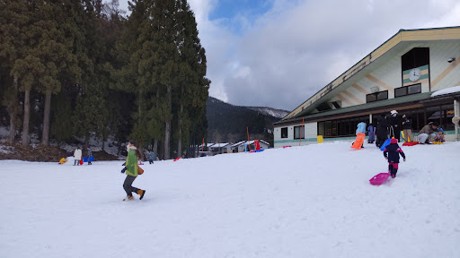 子供とソリをする目的できましたので一緒に滑って楽しめました。 ただ、近くにわき水?があるせいか水はけがわるい。 その日はたまたまイベントをやっていてテントで出店などがあり猪汁や猪丼もあり輪投げなど子供が楽しめてよかった。 あとポニーやウマも来ていて100円でウマに乗れたりエサも100円であげれました。以前違う牧場に行ったときに乗った馬は1000円以上はしたのでかなりやすかった。 ちなみにそこに一緒にいた秋田犬が大きくておとなしくってすごく可愛かった。