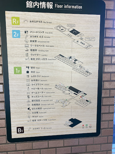・施設が充実 →無料施設がとても充実しています。 ゲームコーナーはファミコンやマリオカートなどの大きい機械もあり、対戦もできます。 2階には卓球/ダーツ/ビリヤード、屋上には縄跳び/シーソー/竹馬など 子供の頃にやってた!!という、童心に戻れるようなものが充実していて、テンションがあがりました! 遊び場の近くにマッサージ機があったので、子連れの方などはお子さんを見つつマッサージ機を利用されていました。