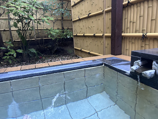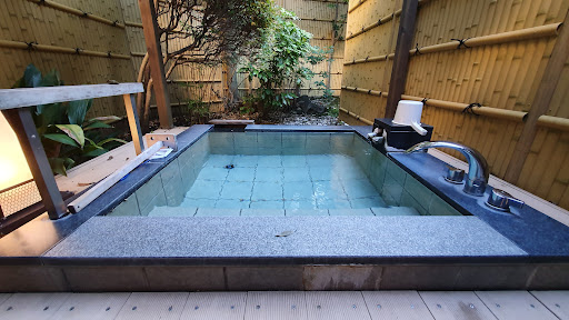 Con: lacks the luxurious touch in overall - e.g. the outdoor garden fences are made of plastic bamboo instead of real bamboo. Private garden's plants are not very well looked after. Some leaves are dead and it's not that pretty nor colorful. The close proximity to the train line means you will constantly hear train track sounds and sometimes announcements. The main public bath is shared with the main building (4 floors bldg Kowakien) and is super ordinary at best in the quality and variety (only 3 baths).