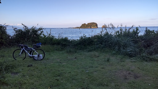 A very nice place to pitch a tent if you don’t need a lot. It is camping on private land directly at the sea with stunning views. Very calm and beautiful. You need to make a reservation in advance and call the lovely elderly man. A Japanese friend called for us and we paid at his shop (see address below) It is 1000yen per tent. there are no facilities at the place but there are public toilets and potable water very close by. Keep this place tidy and clean and don’t stay here without paying . A lot of places here at the coast don’t except “gaijins” at all. The owner seem to check regularly and trespassing in Japan can lead to incredible high fines.