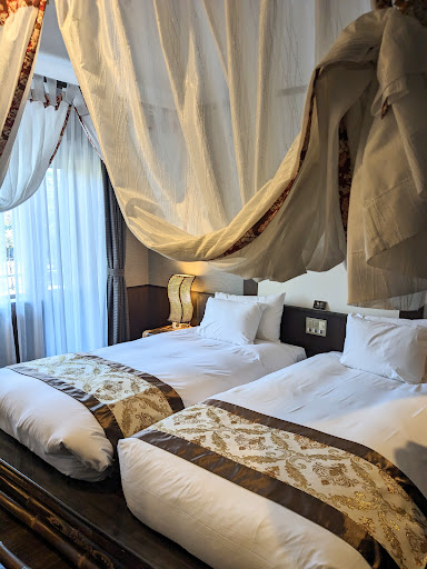 ★気になったところ ・階段の多さ 言えば手伝ってはくれるだろうが兎に角多いので、ペットカートは持ち歩かないが吉 見たところエレベーターが見当たらない (これも車椅子の方とかなら対応変わってくるとは思うが、あくまで一般的な犬連れの視線) ちなみに随所随所でペットカートのレンタルがあった(使わなかったが…。) ・雨の時は魅力が…⤵︎ どこのホテルもそうだが、ここは特に何するにも外に出て〜なので大概どこかで傘必須になる そうすると雨の時は億劫かな…とか足滑らせそうだな…と言った気持ちに。 雨の時は客室内の冷蔵庫に飲み物の種類増やして入れてくれてたら嬉しくなるのかな?とは思った。 (ちなみにお〜いお茶の缶とビールの缶が入っていた。) ・チェックイン後酒が飲めるがおつまみが少ない。ドライフルーツの小さいのと客室にあるわさびの豆菓子のみ。 なにか売店でもいいから豊富におつまみ(乾き物のイカとか柿ピーでいいので…)を売ってくれたらきっと売れると思う。 あと単純に本館は飲み物少なめ。まあ差別化なのかな…と流せるレベルのあれ。本館のドリンクバーにもお茶は欲しいなと思った。