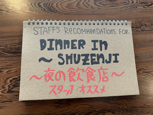 Jamie was very nice at check in and went over all the best spots nearby that I should check out including the foot baths, onsens and the oh-so-beautiful bamboo art. The walking path through the bamboo is great during the day, and so much better when it gets dark. Jamie also gave me a handwritten card when I left, which I was very surprised by and thankful to receive. What a nice gesture!