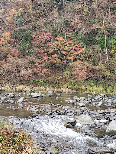 二階の部屋からは川が見え、露天風呂までの道も見えました。 欄間のデザインは先ほどの川端さんの部屋にあった書物のデザインと同じだそうで。 机に 伊豆の踊子の小本が置いてありました。 時間があれば読もうと思いましたが、読む時間がありませんでした。 なぜかと言うと 楽しみにしていた川のそばにある露天風呂に何度も入ったからです。 チェックインして直ぐに向かいました。 建物から20メートルも歩かないぐらいの近い距離に脱衣場があり、直ぐ下に露天風呂。6人ほどが入れる広さで 秘湯を守る会の提灯がまた良い雰囲気を出しています。 そして生えてる木の形が何とも妙な形態で。。 目の前は山。トンビが空高く鳴きながら飛んでいる。川の水量は多くないものの、流れる音が大きいので 雑念も一緒に流してくれるようで、頭の中が空っぽになり 本当になぁんにも考えずに ただボーっと入浴するだけ。それがまたクセになるほど気持ちが良くて、、6回ほどは入ったかと。 空いていれば何度も利用出来る貸切スタイル。1回30分まで。湯温は熱過ぎずぬる過ぎず、ほんとに丁度良く期待以上に素晴らしかった。この日は天気も良く夜は星空が綺麗でした。