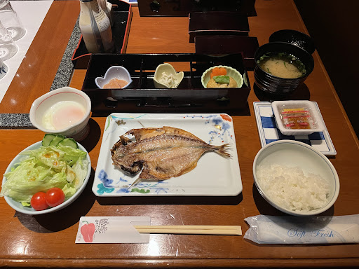 Breakfast was amazing, and I highly recommend you get it! You get a fish + rice + miso soup + runny egg + natto + salad + side dishes + seaweed; plus water and green tea. Super cosy room to dine in as well, with full privacy and great service.
