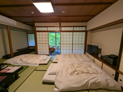 Read moreStayed at this hotel having taken a bath there a few days before.||This hotel is a Yukai club property and the customer service here was excellent. There was heavy snow while we stayed and we were able to borrow snow boots and umbrellas while we were out and about.||The hot spring baths are beautiful looking down onto the river at Yamanaka onsen.||There are two types of room it seems. We stayed in the older type. These rooms are in need of a update with regard to the state of the carpets and there is only a toilet and sink (no bathroom)Having said that the room was very large and the air-conditioning did a good job of keeping the room warm. There is a small seating area looking out over the river and onto the trees which is especially beautiful at this time of year.||Food is buffet-style for breakfast but served at your table for dinner which is a nice touch as the restaurant is on the 8th floor and has been re-furbished.||This hotel has a great location on the main street in Yamanaka onsen and it is an easy walk to the main sightseeing spots and the shops,restaurants and convenience store.||Another added benefit is that you can make use of the return bus service from Nagoya,Osaka and Kyoto for 3000 yen.||This is definitely one grade up from the main Yukai Resort properties. The quality of food is better and the hot spring baths are some of the nicest I have been to of those offered at Yukai resort hotels.||Well worth a visit and the small...