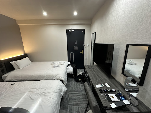Read moreI love this hotel. It’s new, clean. The room is not big but enough for having 1 big luggage opened. Although the room isn’t big , but 2 small double bed are put in the room. The location is spectacular. 1min walk to 5+ restaurants. 2mins walk to Donki, Lawson. 3mins walk to a public car park. 4mins walk to the major train station. To be fair , with this price, what else can you request? Btw at the moment unless you request, no room cleaning will be done when you are away. It’s free (since it’s newly opened) when you request but I am told later the hotel will charge you for room...