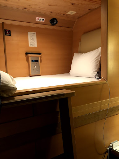 Cozy rooms, most with shared bathrooms, in a simple capsule hotel offering gender-segregated floors.