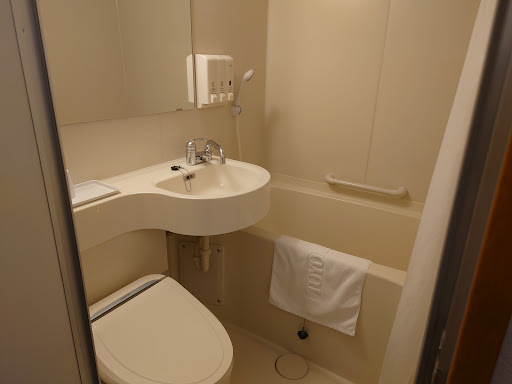 Read moreThis new Toyoko Inn just opened in Feb. It is just a couple of blocks from the train station, which is also the place to catch various trams and buses, including the City View Sightseeing Bus. The shopping mall attached to the station has numerous restaurants and a food court with dozens of tasty options for a quick meal or snack.||||The receptionist who greeted us at checkin spoke very good English. Other staff was less comfortable in English, but were diligent and eager to help, so that we managed to get what we needed on every visit to the desk. They provided the free use of an ethernet cable, so that we could use the high-speed internet connection in our room. There were also guest computers available in the lobby.||||Our non-smoking twin room was small, with no view, but was well laid-out, efficient, quiet and comfortable. The over-sized twin beds had very nice linens and fat, comfortable pillows. The air-conditioning worked well, and there was plenty of hot water in the private bathroom. Amenities included toothbrush kits, razors, combs, and a nice, gender-specific kit of samples of skin care products. (Don't know what is in the men's kit!) Soap and shampoo were in a wall dispenser over the shower.||||The free breakfast buffet was plentiful, but dull: 4 types of tasteless rice balls, miso soup, pickled vegetables, omelet, rolls, bread, and a pot of steamed rice. The coffee was good, and so was the fried tofu. We were glad to save the time and money of finding breakfast elsewhere.||||Upon checkout, the hotel sent my largest suitcase ahead to another Toyoko Inn where we would be staying two days later. That was a tremendous convenience for...