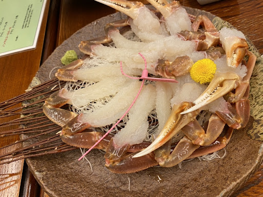Read more旅館というか?民宿というか・・・。でも綺麗です。||夕食でカニ三昧。もう、しばらく食べなくてもいいですというくらい食べました。一人、1.5匹?食べました。貴重な柴山カニ?です。カニの甲羅だけでも、生ミソ、焼いてと・・。カニも刺身からはじまり、ゆで、焼いて、鍋で締めと色々な種類を楽しめました。でも、さすがに食べられない。その時に、「明日の朝でも、もしくはお持ち帰りでも構いませんよ、生以外なら・・・・」と、もっと早く言ってほしかった。だったら、茹でたのは持ち帰りにしたのに。その話をご飯をかなり食べてからだったので、お腹もいっぱいでしんどかったです。||宿のお風呂は、露天が少し小さいのが残念でした。人が入っていると遠慮して入れないという感じの大きさなので、ただ、遅い時間はゆっくり入れました。||宿の方は、みなさん、とても親切ではありました。少しあっさりしている観はありますが。カニは高いけど、ここは、結構お薦めの料金観ですよ。また...