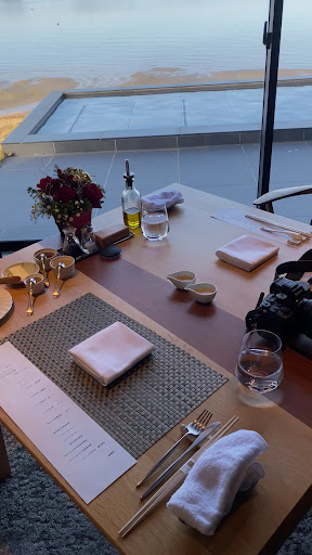 Read moreGWに熊本市から足を伸ばし、天草の世界遺産の教会の街を観光した後、2023年にオープンしたばかりのこちらの宿に宿泊しました。| 10年以上前に天草を旅行した際、ホテル竜宮の「天使の梯子」に宿泊し満足した記憶があり、同じグループでさらに高級路線に特化した新しい宿ということで興味が湧き、今回予約しました。| 熊本市から車で1時間強、世界遺産の崎津教会までも1時間強、熊本市から崎津教会まで行きこちらの宿まで戻ると3時間半となかなかの距離を運転することになりますが、天草周辺の観光とセットで考えれば良い場所と言えます。ただし帰りは迂回ルートの少ないなか大渋滞でしたので、スケジュールには余裕を持った方がいいです。| 眺めの良いラウンジでウェルカムドリンクを頂きながらチェックインした後、アート作品が飾られた吹き抜けや通路を通って部屋に案内されます。全11室オーシャンビューということもあり、広々とした部屋からは天草松島の海と島々が眺められます。ジュニアスイートの半露天風呂客室を予約したのですが、墨色をベースにしたシックな色合いで、長いカウンターと洒落た椅子の奥に大きなソファが配置されており、照明やテーブル、チェア、壁材・床材も高級感が漂います。リビングに繋がる形で奥の寝室には1人で寝るには大き過ぎるベッドが2つあり、リネン類も高級な品を使っていそうです。シンクやトイレも部屋と同様の雰囲気で、アメニティはモルトンブラウン等が使われていました。風呂も広々とした石造りで、お湯は天草松島温泉を引いており、浴室奥の巨大な窓はテラスに続きますが、電動で上部に開いて半露天にして海を眺めることができます。| 夕食はダイニングに移動し、海と水盤をインフィニティプールのように重ねて見ながら、10席ほどのカウンターで、天草や熊本の海の幸、地の物を使ったコースを頂けます。伊勢海老はお造りと難波焼と味噌汁で、他にも赤牛や鮑など贅沢な品々が続き、〆は目の前で寿司を一貫ずつ握って頂き、どれも本当に美味しく、お腹一杯になりつつ最後まで楽しめました。朝食は、同じカウンターで違った時間帯の海を眺めながら、地魚のポワレやオムレツ等、こだわりの洋食コースを頂きました。| 朝食後はチェックアウトまで少し時間があったので、朝風呂に入った後、宿の前の散歩道を腹ごなしに散歩して、天草松島の景色を堪能できました。| 天草にはいくつか高評価の宿があり、どの宿を予約するか悩みましたが、こちらは部屋・食事・サービス、どれを取っても非常にレベルが高く、贅沢な滞在を経験することができました。気軽に行ける場所・金額ではないですが、機会があれば是非再訪した...