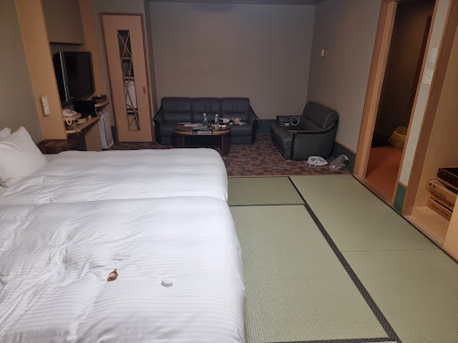 We got a booking at this hotel from a Japanese travel agent (JTB) as part of our three-day flower viewing tour of Hokkaido. I think it was chosen for its proximity to the last stop in our tour (Ginga Waterfalls). I really hope JTB uses another hotel for future tours because Sounkaku was very unpleasant.||||Just to go over the good points, the hotel has relatively large Japanese style rooms with their own bathrooms. Basic amenities were provided; there was s decent amount of food for dinner and breakfast. There were onsen -- I tried the outdoor one on the fifth floor and it was reasonably clean with standard facilities and amenities.||||Everything else was problematic.||||1. Service was horrible, at least from the perspective of an English speaker. There was just one person at reception who could understand basic English. Others were mocking me as I asked for robes for the other people in our party: two for women and one for a man. "Fireman", he insisted, with a laugh. "Fireman". Instead of asking what I meant, everyone at reception was just laughing.||||I received this treatment for asking for items that are supposed to be in the room in the first place -- they had the sash and jacket in the cabinets but not the robe (yukata). Room preparation was clearly sloppy.||||2. Still on service, the lack of English communication skills made it difficult to order from the drink bar. They did not understand that I wanted to use the drink bar to get soft drinks (as only coffee and tea are included in the buffet). When I went back to refill (the drinking glasses are very small), they stopped me. It took them 15 minutes to decide to let me use the drink bar. By the time they brought the glass for the drink bar, we had finished eating dinner. ||||I spoke English and Japanese to them but the problem seems to be lack of training in responding to legitimate and easy requests from their customers.||||I felt that the staff of this hotel was too keen to prevent pilfering of robes and people avoiding payment for drinks a little too much. Perhaps, a hotel as bad as this attracts that kind of clientele. They end up inconveniencing other guests in their cheap crusade.||||3. The person at reception (Fireman) and at the drink bar were manning the rice balls table the following morning, so there was no way to know what was in the onigiri unless you Google it. If you have allergies, this can't be good. ||||4. They don't help with luggage at check-out time.||||5. The people at the gift shop were curt, mean-spirited people -- they spoke to us like we were bothering them by purchasing there.||||6. The gift shop was poorly stocked and mostly with cheap things.||||7. Drinking water is not free.||||8. This hotel was opened in 1923 and it looks like it hasn't been renovated in 50 years. ||||9. No wi-fi except at the shabby lobby.||||10. Our room was used by smokers at some point -- it set off my asthma overnight. Tells you something about maintenance.||||I will never go here again. And I will check with JTB next time I am in Hokkaido to make sure this is...